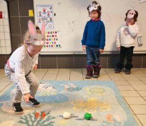 En s’inspirant de la méthode d’apprentissage «Narramus », les enfants jouent l’histoire pour mieux la comprendre et la raconter